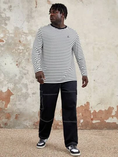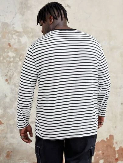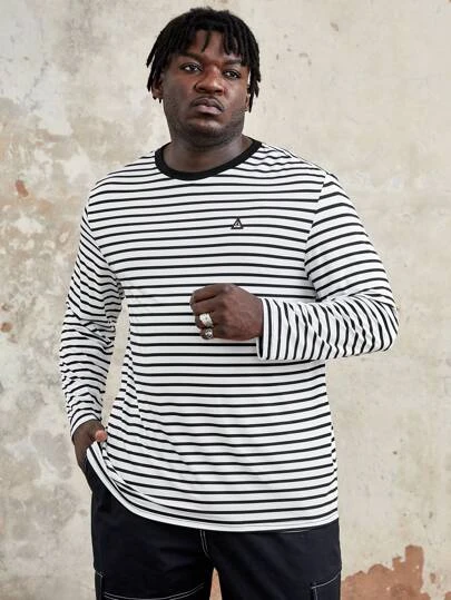 SHEIN Manfinity Homme Men Plus Striped & Letter Patched Contrast Trim Tee