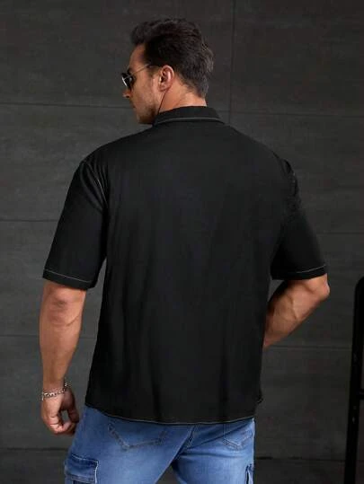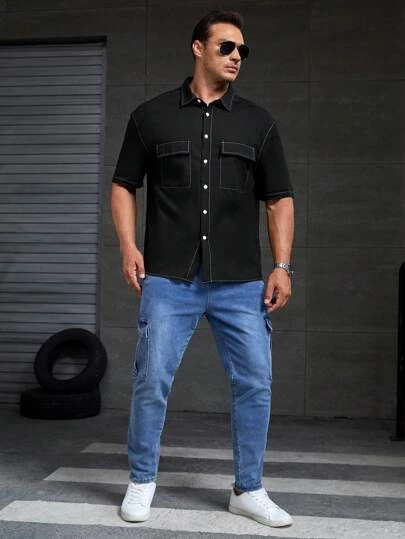 SHEIN Manfinity Hypemode Men Plus Flap Pocket Top-stitching Shirt