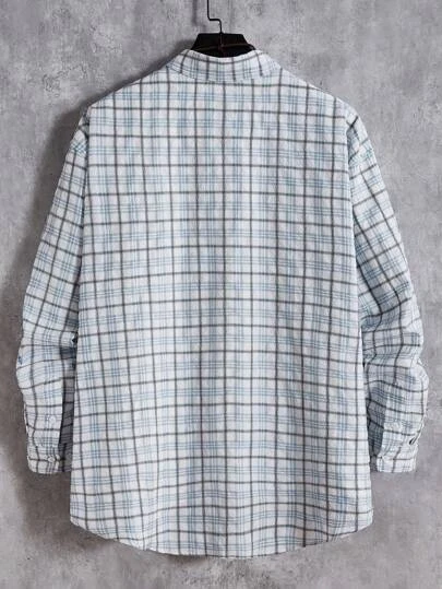 SHEIN Manfinity Hypemode Men Plus Plaid Print Pocket Patched Shirt