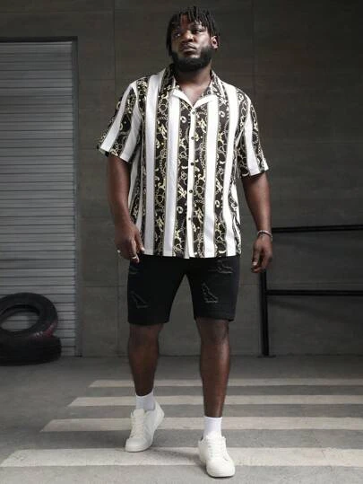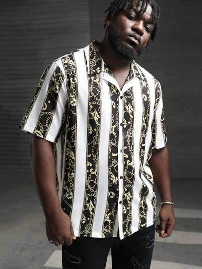 SHEIN Manfinity LEGND Men Plus Baroque Print Shirt