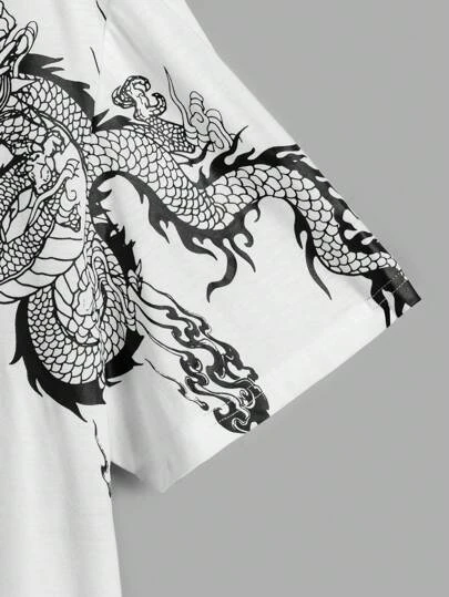SHEIN Manfinity LEGND Men Plus Japanese Letter & Dragon Graphic Tee