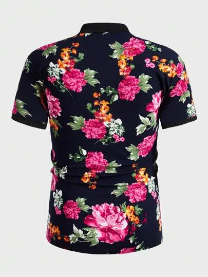 SHEIN Manfinity RSRT Men Plus Floral Print Polo Shirt