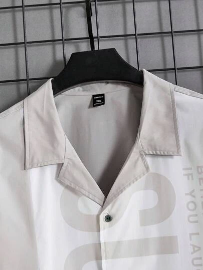 SHEIN Manfinity Sporsity Men Plus Letter Graphic Button Front Shirt