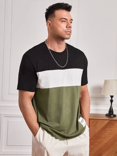SHEIN Men Colorblock Letter Patched Detail Tee