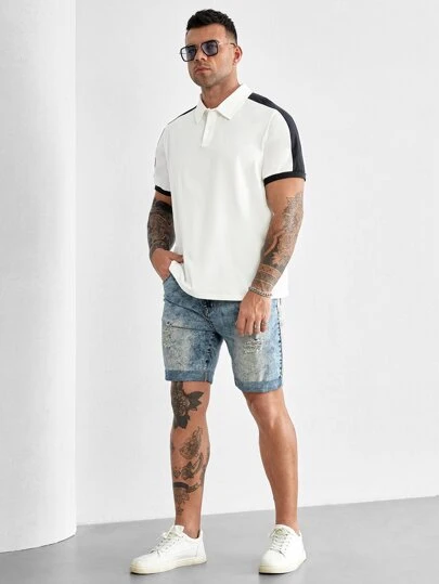 Manfinity Homme Men Letter Embroidery Contrast Trim Polo Shirt