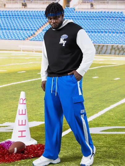 SHEIN Men Drawstring Waist Contrast Side Seam Cargo Pants