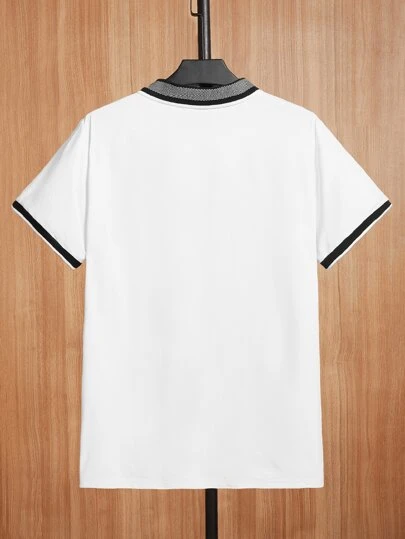 SHEIN Men Letter Patched Striped Trim Polo Shirt