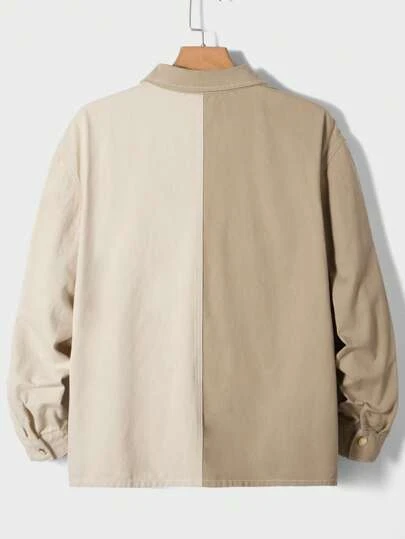 SHEIN Men Plus Cotton Two Tone Dual Pocket Denim Shirt Without Tee