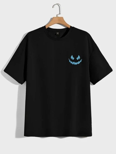 SHEIN Men Slogan & Cartoon Graphic Drop Shoulder Tee