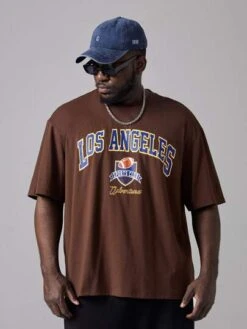 SHEIN Men Letter & American Football Graphic Drop Shoulder Tee